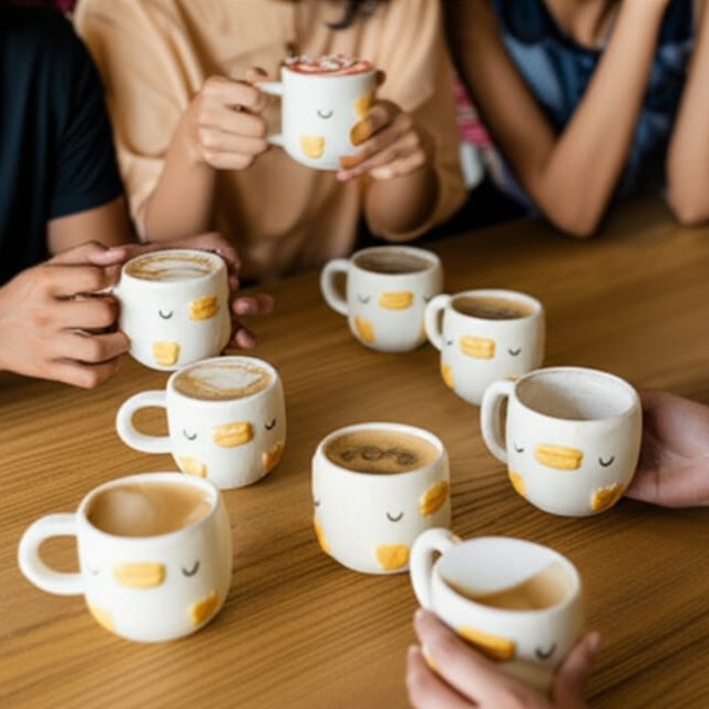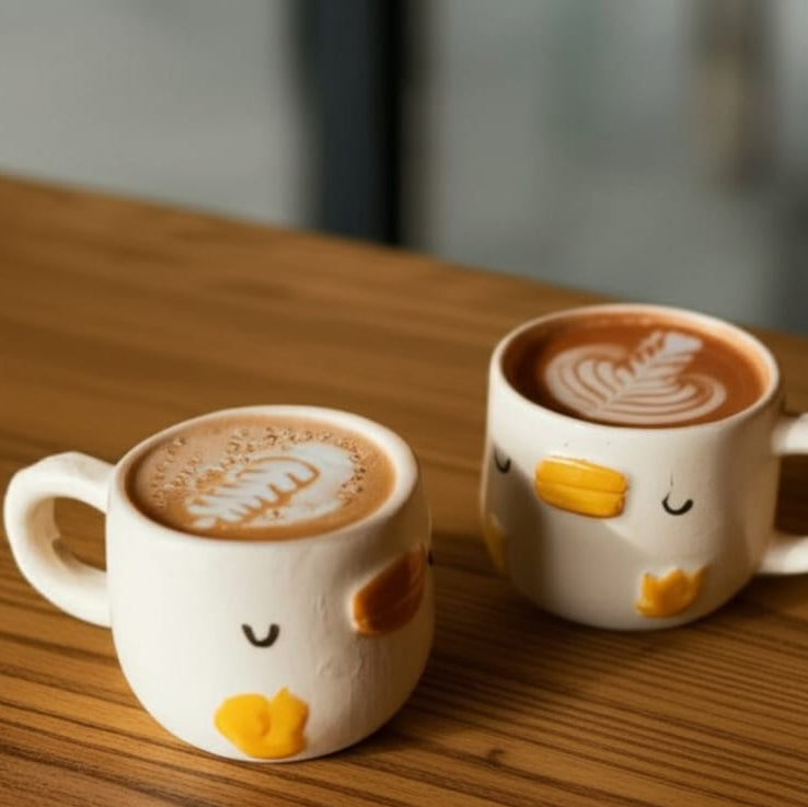 Playful charm meets refined craftsmanship in these whimsical mugs, designed to bring a smile with every sip. The smooth ivory ceramic is hand-finished with delicate features and cheerful accents in golden yellow, forming a subtle nod to a duckling’s gentle form. Sculpted for comfort with a balanced handle and rounded body, they make lattes, cappuccinos, or hot chocolates feel as indulgent as they are heartwarming. A delightful fusion of luxury and lighthearted design, these mugs turn everyday rituals into moments of joy.