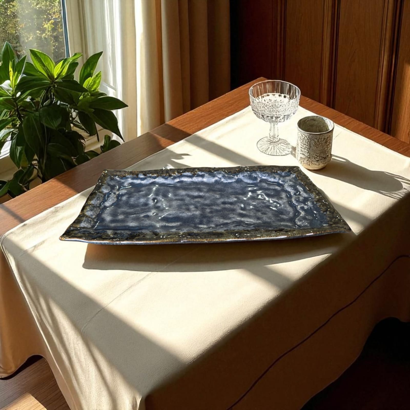 Rooted in Japanese ceramic tradition and elevated through contemporary artistry, the Obsidian Haze Platter is a refined expression of sculptural elegance. Handcrafted in high-fired stoneware and finished with a moody glaze of obsidian black and ash grey, it embodies the quiet drama of nature’s raw elements.