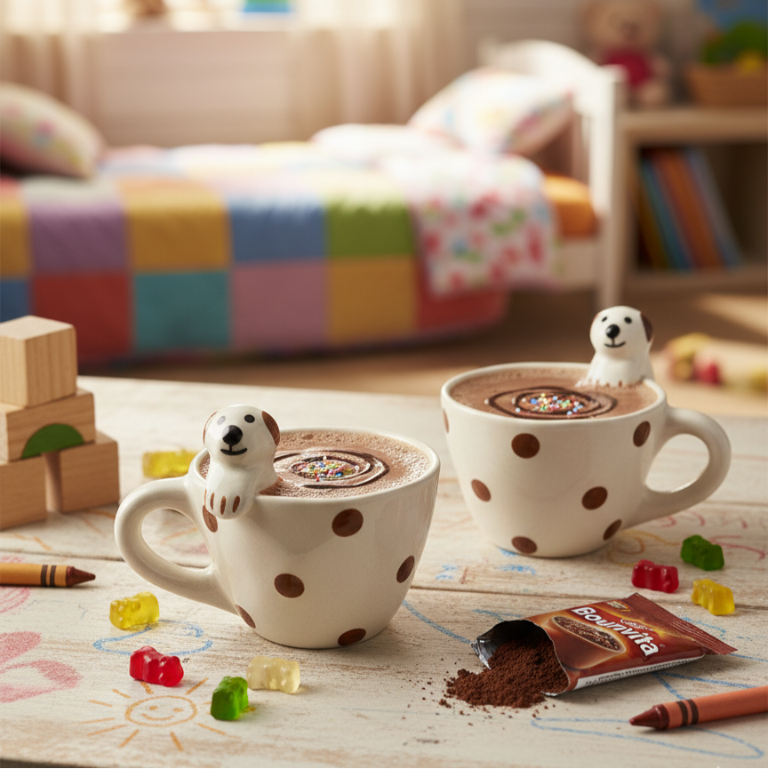 Turn your tea-time into a joyful ritual with this handcrafted ceramic mug. Adorned with whimsical polka dots and finished with a glossy glaze, its highlight is the sculpted puppy figurine peeking playfully from within—an artisanal detail that makes it both functional and delightful. A perfect blend of craftsmanship and charm, it’s designed to add warmth and personality to every sip.